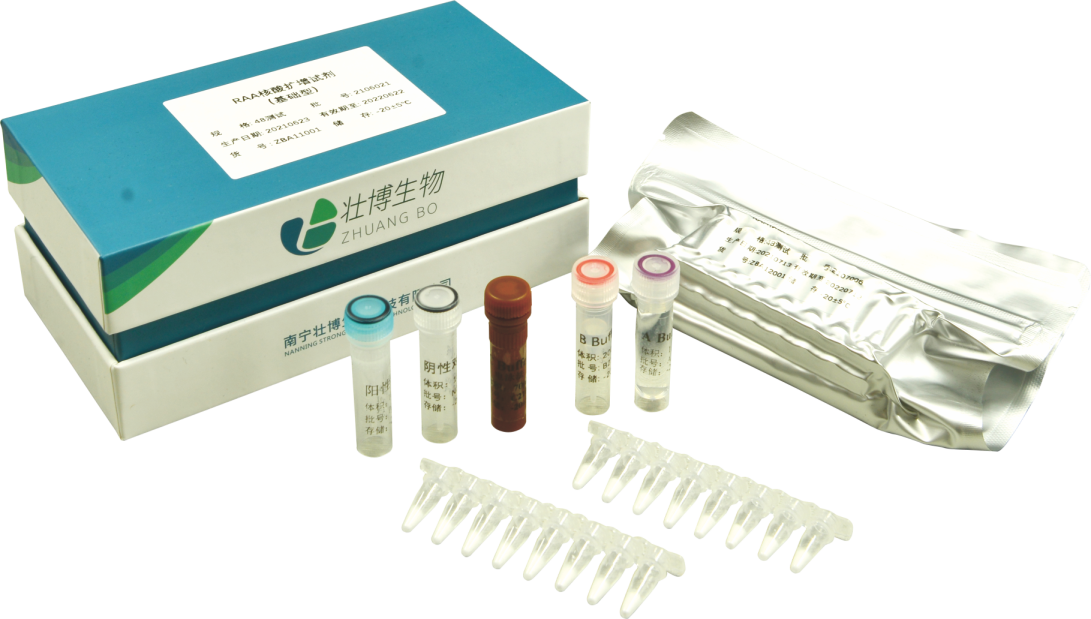 本产品是基于 RAA 技术开发的恒温核酸扩增检测试剂,在37℃条件下特异识别并扩增目标样本的基因片段,可用琼脂糖凝胶电泳直接判断是否扩增出目的片段。